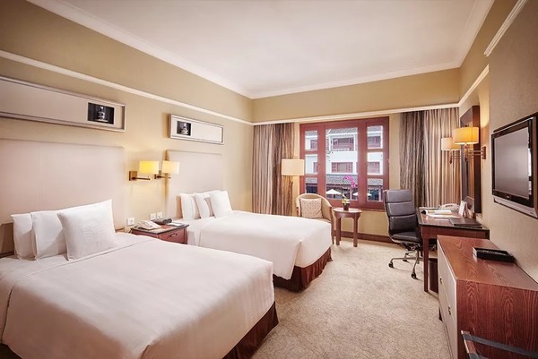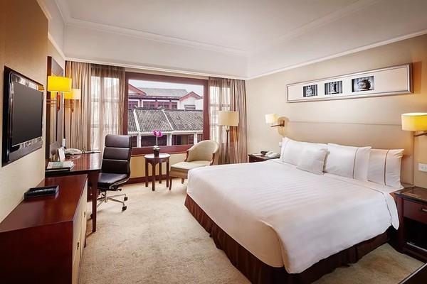 豪华房32㎡,传统的中式装修风格,稳重大气,客房内配备了享有美景的大窗户。