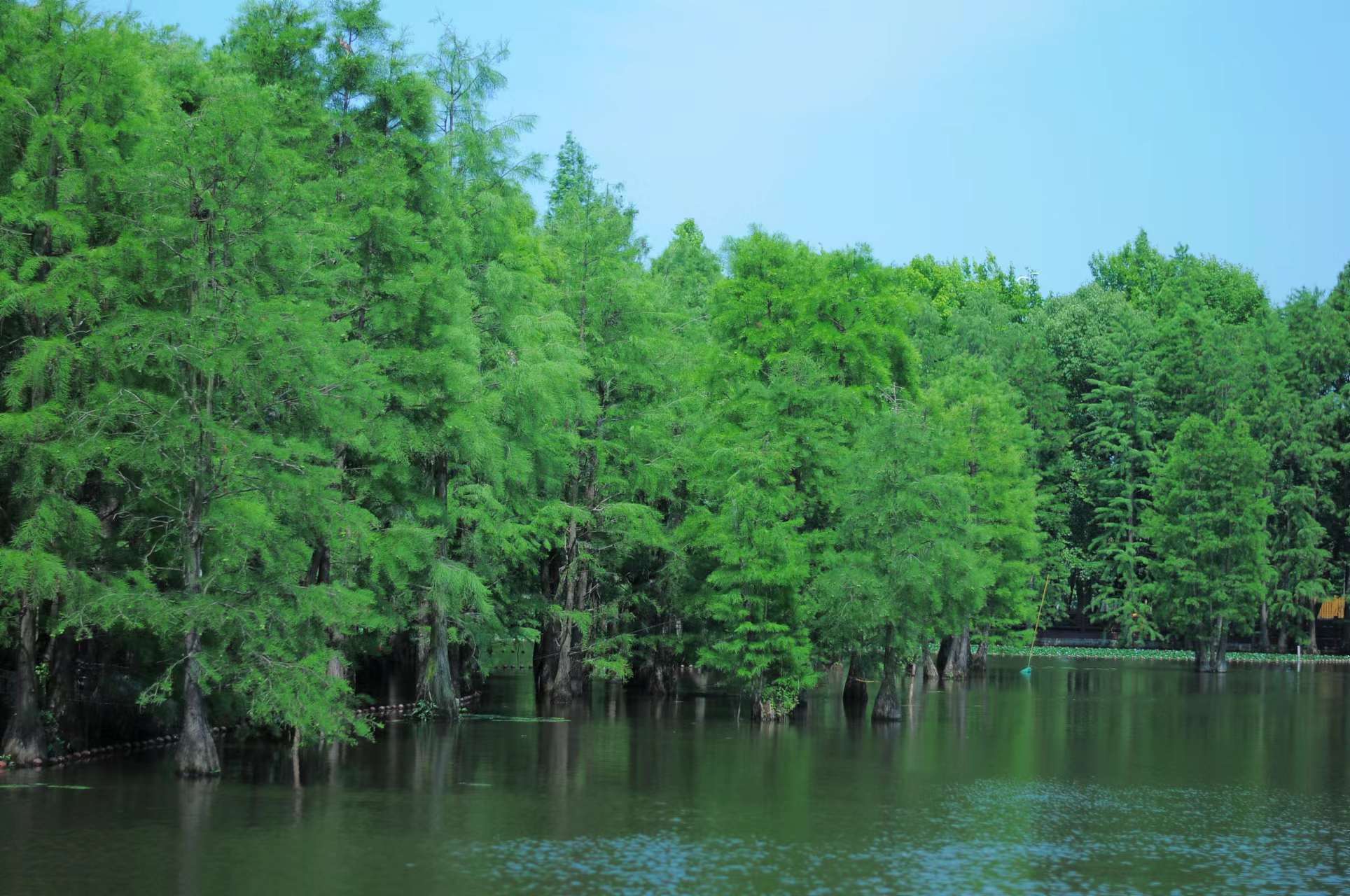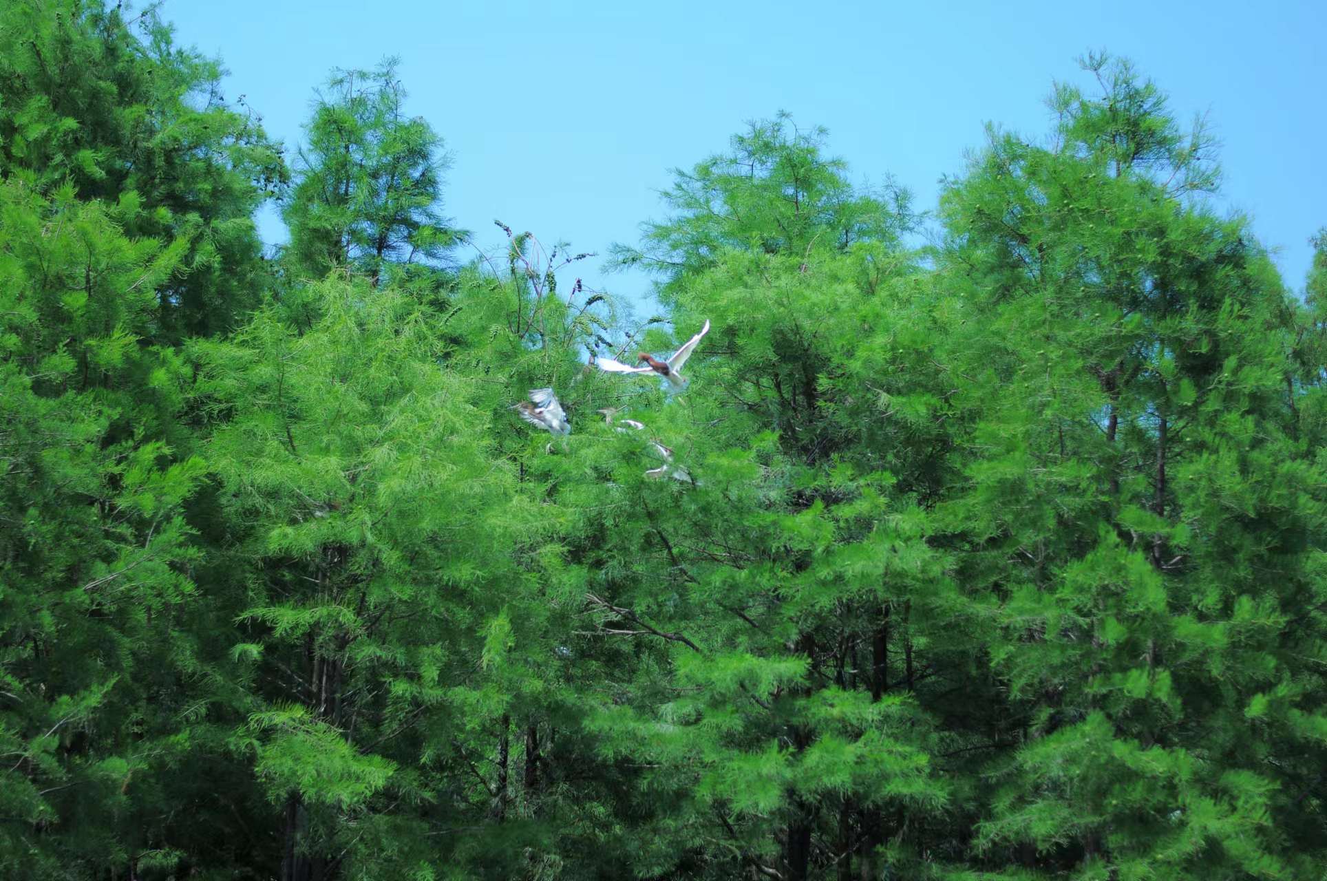 | 特别推荐,尚湖风景区有一个非常特别的景点——水上森林。来到水上森林漫步于森林木栈道,可以看到水中的池杉树枝干挺拔,树形柔美,倒影在水光中,亦动亦静。这种池杉属于落叶杉,原产于美国弗吉尼亚洲,是世界著名的观赏树种。春季的池杉树绿意盎然更显壮美秀丽。水上森林不仅是人类的乐土,更是鸟儿的天堂。目前湖中鸟禽已达近百种。其中国家一级保护的珍禽有中华秋沙鸭、白鹳、黑鹳;二级保护的有天鹅、鸳鸯等等,更有成千上万的白鹭、灰鹭由候鸟成了地地道道的留鸟。成为了“新常熟鸟”,在此繁衍后代再也不飞走了。来到水上森林乘坐竹筏,沿着水路缓缓驶入林荫深处,可以看到一株株形状如“净瓶”的池杉,从堤岸的这头一直绵延到那头,如同来到了原始亚马逊森林一般。这里是自然与人类互动的奇特之地,是人们享受飞鸟之乐的绝佳之所。 |