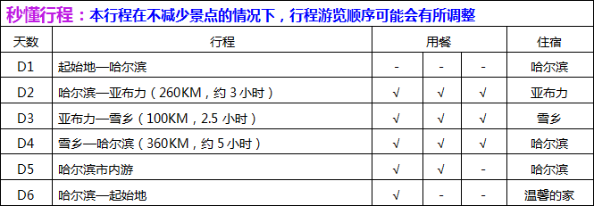 5、【景点及赠送】:门票行程中只含首道大门票(滑雪及雪乡门票,其他均为赠送项目,不退不换)。