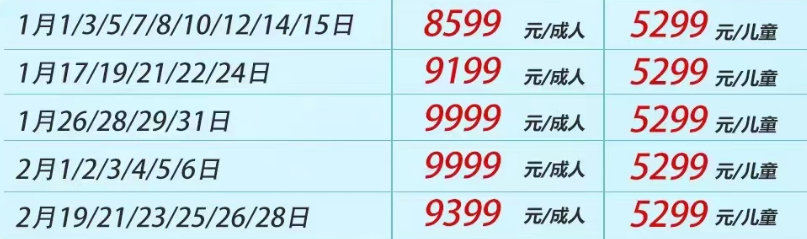 8、【儿童】:含旅游车车位、半价正餐、导服,不含景区门票、住宿。